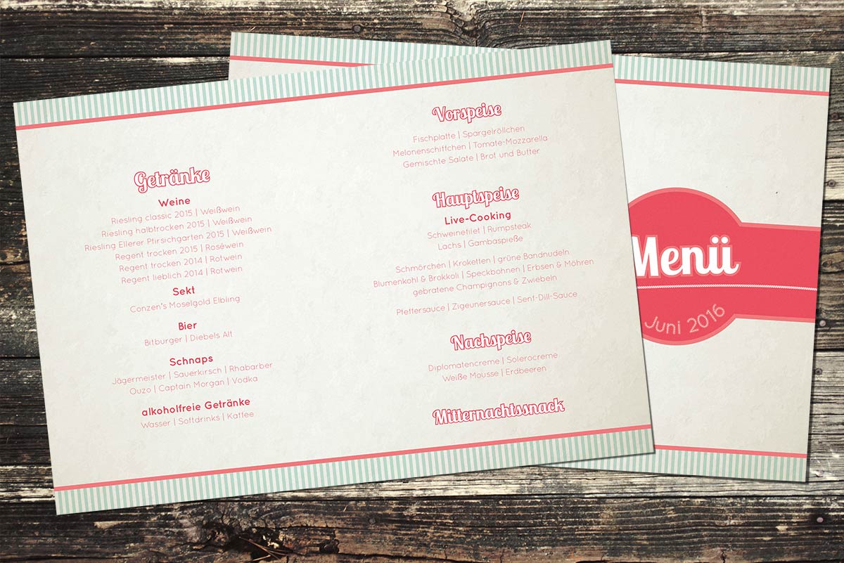 Ich gestalte deine Einladungskarte, Danksagungskarte, Menükarte und vieles mehr ganz nach deinen individuellen Wünschen. Mit einer auf dich ganz persönlich abgestimmten Papeterie möchte ich maßgeblich dazu beitragen, dass deine Feier zu einem unvergesslichen Fest wird.