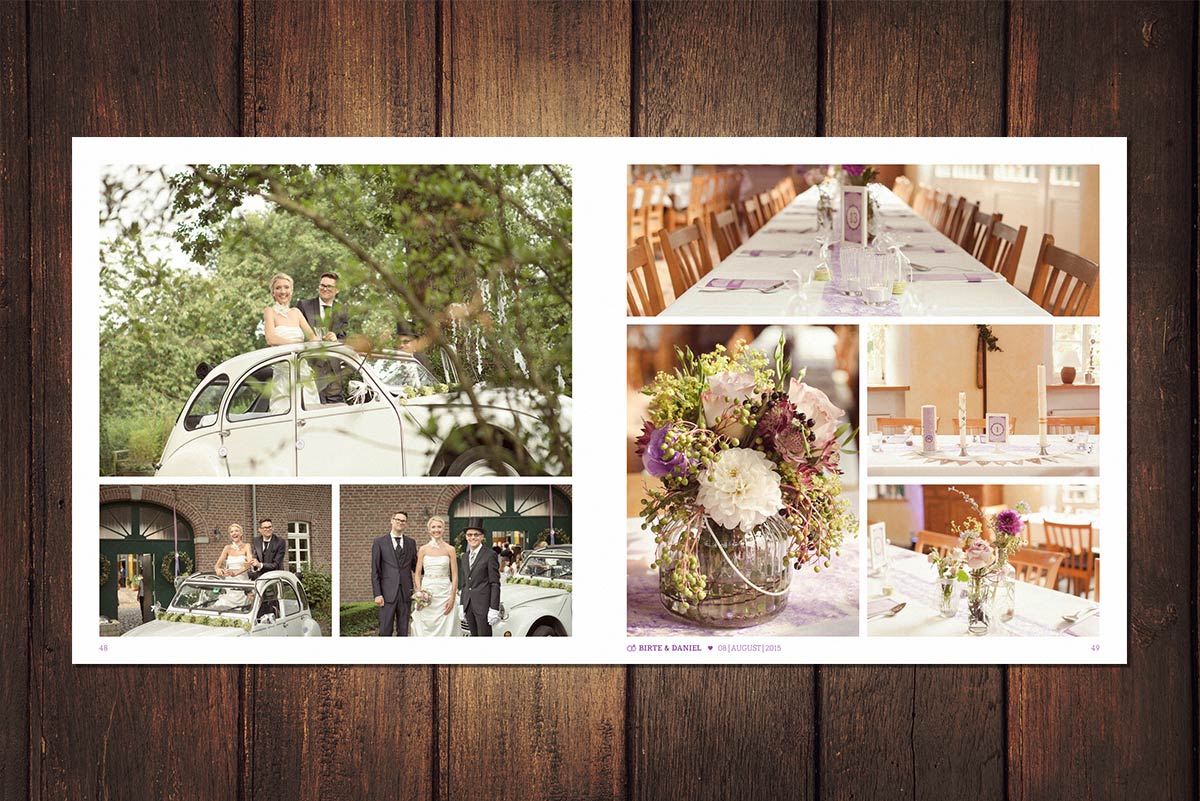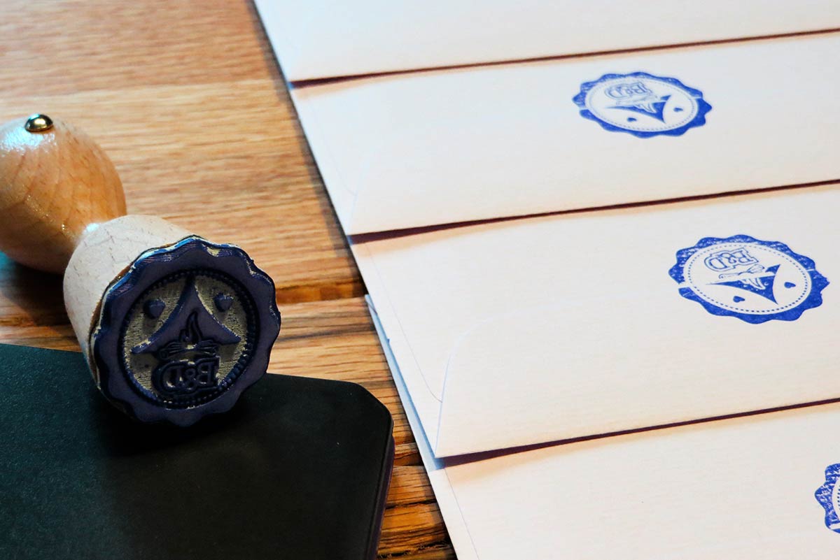 Neben Einladungskarten für Freunde und Verwandte für diverse Anlässe war es schließlich meine eigene Hochzeit im August 2015, die meine Leidenschaft für eine mit viel Liebe zum Detail gestalteten Papeterie weckte. Zunächst entwickelte ich ein eigenes Logo, das den Heiratsantrag widerspiegelte. Ob Save-the-date Karte, Einladungskarte, Kirchenheft, Menükarte, Gästebuch, Sitzordnung, Namensschilder oder Danksagung, überall war anschließend das Logo zu finden. Selbst unsere Gäste haben das Logo zum Schmücken des Hochzeitsautos oder für weitere Überraschungen aufgegriffen. Neben den klassischen Printmedien haben wir das Logo aber auch für unsere Gastgeschenke, kleine leckere Maccarons, oder die Hochzeitstorte verwendet. Mit einer Stempelvorlage haben wir zudem unsere Post „versiegelt“. Schließlich zurück zu den klassischen Printmedien, gestaltete ich das Fotobuch zu unserer unvergesslichen Hochzeit.